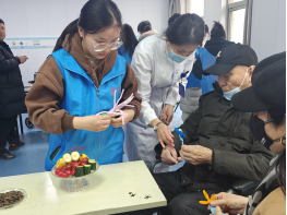 志愿者们还与老人一起开展剪纸、捏气球等手工活动。大家一起用手工或双手制作出一幅幅精美的图案,红红的纸屑映衬着老人们开心的脸庞,活动现场欢声笑语,其乐融融。