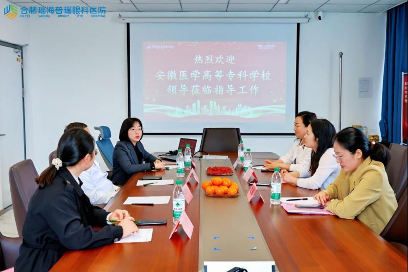合肥瑶海普瑞眼科医院负责人陈艳院长、石文娟主任等热情接待,并陪同潘颖一行参观了医院的眼视光门诊、屈光门诊、检验科、实验室、办公室及员工宿舍等,陈院长详细介绍了医院的基本概况、发展历程、人才队伍、实验室仪器和发展趋势等情况,以及医院的实习带教水平和对实习生、毕业生的需求。