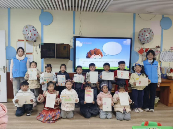 活动现场温馨洋溢,志愿者们围绕“认识母爱”“回忆母爱”“表达母爱”等环节,精心设计形式多样的互动内容。在“认识母爱,感知温暖”环节,志愿者通过生动的图片和贴近生活的小故事,讲述妈妈在日常照料中的点滴付出,让孩子们在轻松氛围中体会母爱的无私与细腻。“回忆母爱,分享美好”环节则鼓励孩子们踊跃发言,用稚嫩的语言讲述妈妈为自己做过的暖心小事,在分享中加深对亲情的理解与珍惜。