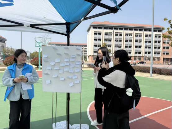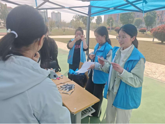3月21日世界睡眠日,“Yu见”一站式社区星火志愿服务队的志愿者们身着蓝色马甲,携带便签纸、笔及趣味问答题目,在校园里开展“科学睡眠,健康同行”主题宣传活动。活动将健康知识普及与趣味互动深度融合,以青春行动传递科学睡眠理念,为春日校园增添了一道温暖亮色。
