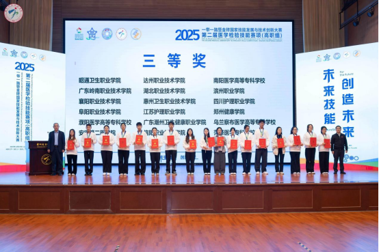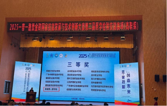 2025年11月27日至2025年12月1日在福建漳州卫生职业学院举行的2025“一带一路”暨金砖国家技能发展与技术创新大赛之第二届医学检验技能赛(高职组)全国总决赛中,安徽第二医学院医学技术学院的周宝宝、王思宇、彭欣瑶三名学生代表学校参赛,荣获全国三等奖。这一奖项不仅是我校学子专业技能水平的卓越展现,也是我校持续推进实践教学改革、深化产教融合成果的生动体现。
